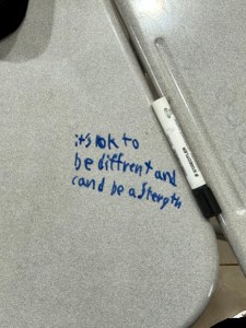 This month, we celebrated International Disability Day on December 3rd, and I had the awesome opportunity to go into classes and teach lessons to the students on inclusion and difference. We had great, biblical conversations about how God views individuals with disabilities, and His purpose an plan for humanity. These conversations fuel me and get me so excited about the mindset shift I hope to see in the next generation – adults who understand that difference does not have to coincide with negative ideas, but rather that it is purposeful and necessary for God’s great plan. The students learned about neurodiversity and we reflected on the many ways God has created our brains to work and how we can glorify him knowing how we’re made. After I taught the lessons, I asked the students to write on their desks what they learned and their takeaways were amazing! I am so grateful to be in a position to teach an international community of children about the selfless, unending love of God through His creation.